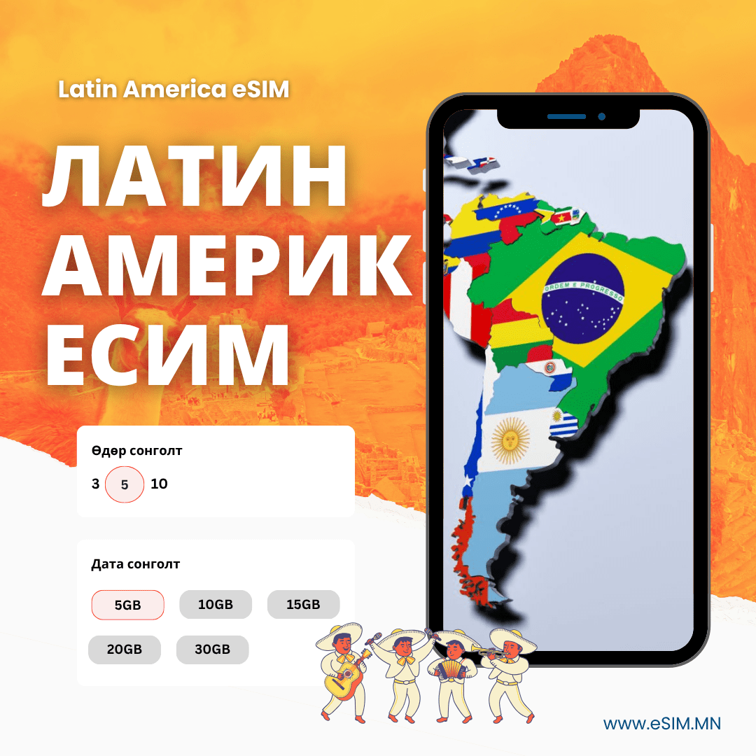 Латин Америк Дата еСИМ (Argentina, Chile, Costa Rica, Peru, Brazil, Colombia, Mexico, Uruguay eSIM)